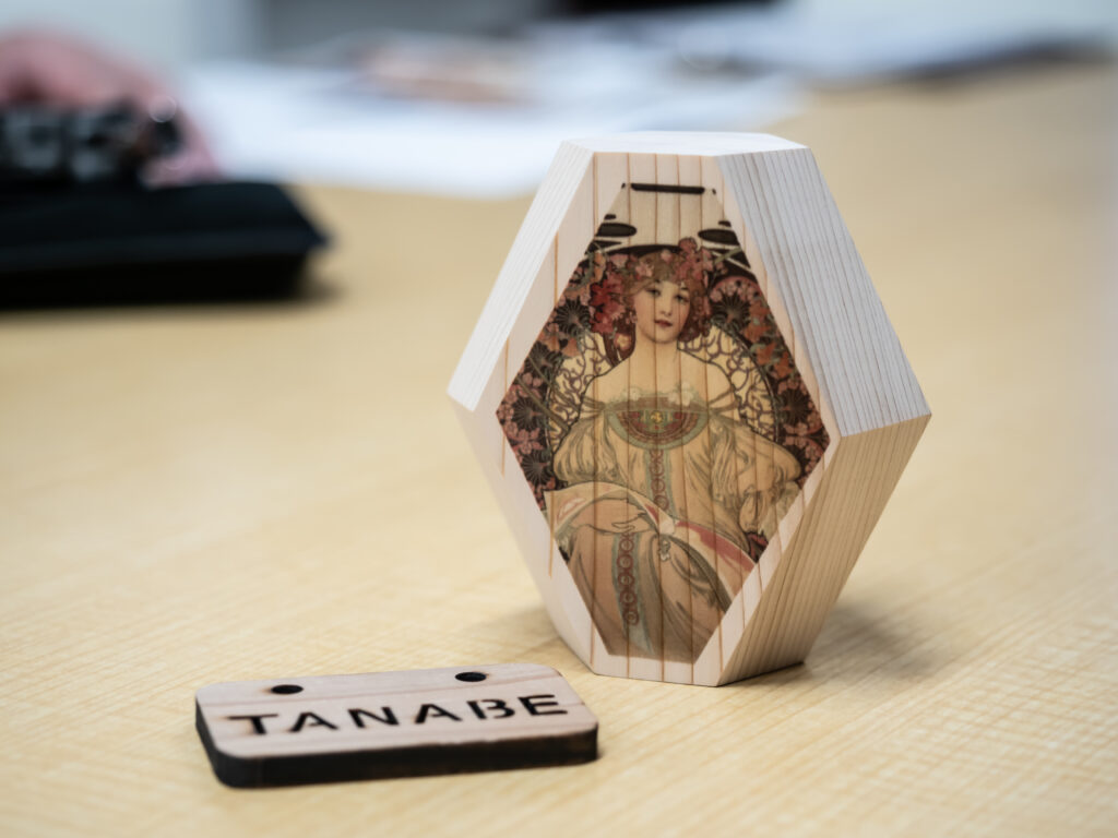 京都市産材である「みやこ杣木」のみを使った木材で製材したグラスや一輪挿しなどの生活雑貨を取り扱うオリジナルブランド「木の幸-kinosachi-」を展開しています。ブランド名には、「海の幸」「山の幸」と同じように、木からいただく幸せのひとつに山田木工所の木製品がなれますようにという願いが込められています。