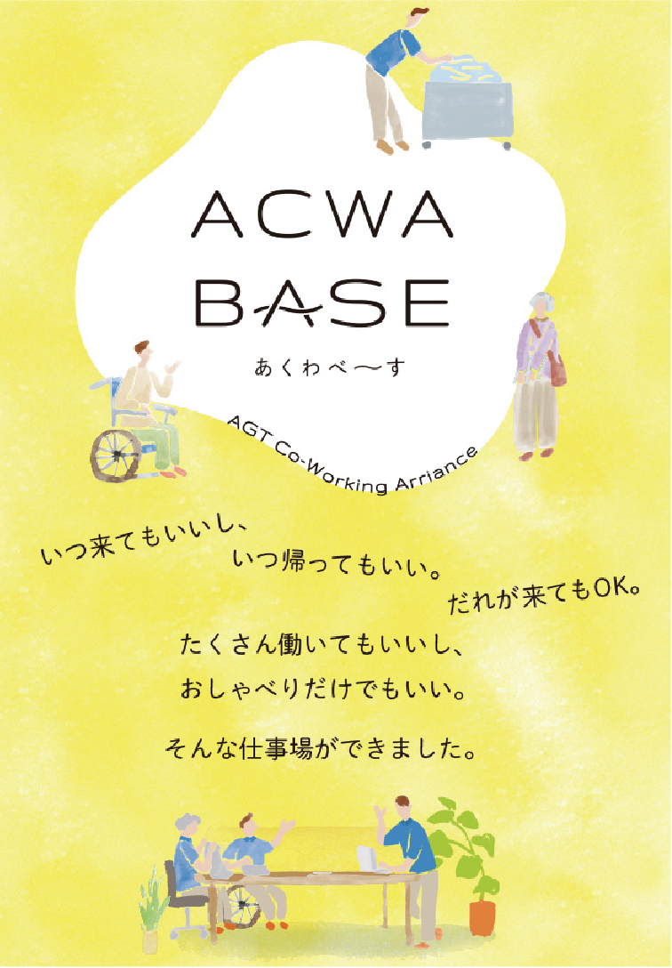 久御山町にあるACWABASEは、アグティが地域循環ワークシェアリング事業として最初に設立した拠点です。「会社は働く人のために存在する」という理念のもと、「自由にはたらく」ことをきっかけに、顔の見える関係性を地域で紡いでいます。